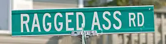 - ^ "WestJet apologizes after Ragged Ass Road shirt flap". CBC. October 16, 2012. Retrieved September 19, 2015.