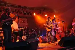 Railroad Earth is a bluegrass-influenced Americana band formed in Stillwater, New Jersey in 2001.[1] The band's music combines elements of progressive bluegrass, folk, rock, country, jazz, Celtic and other Americana influences. Recognized as "carrying on the tradition of improvisational, genre-spanning music laid forth by the Grateful Dead," Railroad Earth is known for lyrical songwriting and extensive live improvisation.[1] The band takes its name from the Jack Kerouac prose poem "October in the Railroad Earth".[2][3] The band also has a song of the same name.