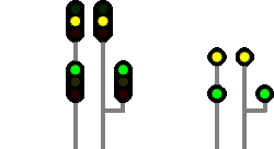 | Advance Caution Normal Speed to Medium Speed*‡ | Advance Caution to Medium | Proceed not exceeding line speed, expect the next signal to be displaying a 'Reduce to Medium' aspect and be prepared to pass the second signal at medium speed. |