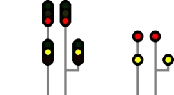 | Caution Medium Speed Prepare to Stop* | Medium to Stop | Proceed past this signal not exceeding medium speed until the train has cleared the points, and be prepared to stop at the next signal. |