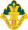 Description: The 4th quadrant of a rainbow with three bands of color: red, gold and blue, each 3/8-inch (.95 cm) in width, outer radius 2 inches (5.08 cm); all within a 1/8-inch (.32 cm) Army green border.[16]