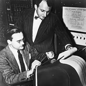 Dr. Slutz was associated with the Electronic Computer Project at the Institute of Advanced Study (IAS) following his PhD in 1946.[7] In 1948, he joined the National Bureau of Standards (now NIST), where he co-invented the SEAC computer with Samuel N. Alexander and worked as its chief architect until 1954. Dr. Slutz then served as the chief of the Radio Propagation Physics Division at the National Bureau of Standards in Boulder, Colorado, until 1980.[2][3][8][9][10]