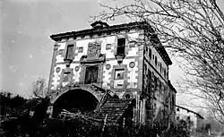 Ramón Altarriba y Villanueva married Rosa Guerra y Serbi; nothing is known of this marriage, apart that his wife died in 1875 and the couple had no issue.[16] He then espoused María de la Blanca Porcel y Guirior (1859-1940),[17] heir to aristocratic family originating from Gipuzkoa and Andalusia. Since her father[18] died in 1873[19] with no male descendants, having been the oldest daughter she arranged to inherit his titles as 7th marquesa de Villa Alegre and San Millán; Altarriba became marqués consorte.[20] The couple had two sons, Ramón and Jaime Altarriba y Porcel.[21] Nothing is known about the former; the latter (1884–1936)[22] joined artillery and pursued a military career.[23] He became comandante de Artilleria, maestrante de la Real Maestranza de la Caballeria de Zaragoza[24] and an entrepreneur.[25] Also an active Carlist, in 1934 he headed finance section of Comunión Tradicionalista.[26] The 1936 coup surprised him in the Gipuzkoan spa of Zestoa, where he was detained by the republican militia and died.[27]