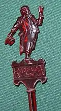 From its start in the 1950s until around 1976, Ramada's logo featured a friendly bald innkeeper, dubbed "Uncle Ben". He sported an apron (later a suit and tie) and held a top hat in one hand; in the other hand was a red trumpeted banner that read "Ramada Inn Roadside Hotels". From 1976 to 1982, the chain's logo was a simple rounded rectangle that read "Ramada Inn" in the original design's gothic Western-style lettering. From 1982 to 2004, Ramada changed to a revised, rounded rectangular design with more "modern" lettering.