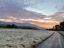 Rancho Mirage's climate is a hot desert climate, with hot and dry summers, often with temperatures reaching 120 °F (49 °C). Winters are short and mild, with chances of night frost occurring only in December and January. Annual precipitation ranges between 3.5–5.5 inches (89–140 mm) and is often the result of winter rainstorms.[72] Rancho Mirage is one of nine cities situated in the Coachella Valley, a 55-mile-long (89 km) valley that is an extension of the Sonoran Desert to the southeast. It is located in the Colorado Desert, a name used for the California section of the Sonoran Desert. Climatically, Rancho Mirage is dominated by hot temperatures and precipitation that averages less than ten inches a year. Even in the coldest month, January, temperatures below 40 °F (4 °C) are rare.[73]