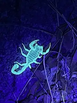 The fauna consists of over 20 species of mammals. Some native carnivores include the Gray fox, Coyote, Ringtail cat, Bobcat, and the Desert Kit Fox.[19] Other species include the Southwestern Willow Flycatcher, Bell's Vireo, Prairie Falcon, and the Peninsular Bighorn Sheep.[62][63] Another notable species of wildlife is the endemic Coachella Valley fringe-toed lizard. The Sonoran Desert has eleven species of rattlesnakes - more than anywhere else in the world.[64] Other notable species include the Gila monster, Chuckwalla, Horned lizard, Desert iguana, Vulture, Desert tortoise, Scorpion, and Javelina. Black bears are rare, however, they inhabit the surrounding mountains and have been sighted on numerous occasions.[65] Four species of Scorpion are found in the Coachella Valley, none of which are considered dangerous to humans.[66][67] The most common species is the Dune scorpion or Desert sand scorpion (Paruroctonus mesaensis) but the valley is also home to the Giant hairy scorpion (Hadrurus arizonensis), which is the largest species of scorpion in the United States.[68][69]