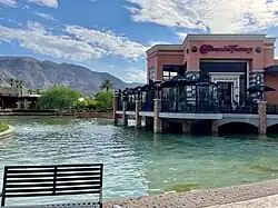 A stretch of California State Route 111 in Rancho Mirage has earned the moniker "Restaurant Row" as there are over thirty eateries located between Bob Hope Drive and Frank Sinatra Drive. A number of these are located at the River at Rancho Mirage, a 30-acre outdoor shopping center.[57] The area surrounding The River is also known as Downtown Rancho Mirage.[15][58] On a per-capita basis, the city is home to one eatery for every 240 residents, making it the city in the Coachella Valley with the most restaurants per capita.[15]