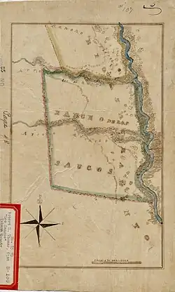 Rancho Saucos was a 22,212-acre (89.89 km2) Mexican land grant in present-day Tehama County, California given in 1844 by Governor Manuel Micheltorena to Robert H. Thomes.[1] The name means "Ranch of the Elder trees". The grant extended along the west side of the Sacramento River from Elder Creek and Rancho Las Flores on the north to Thomes Creek on the south, and encompassed present-day Tehama.[2]