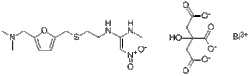 N- / 2 - /// 5 - / (Dimethylamino) methyl / -2-furanyl / methyl / thio / ethyl / -N'-methyl-2-nitro-1,1-ethenediamine bismuth citrate.