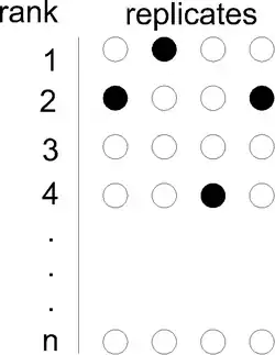 Given n genes and k replicates, let be the rank of gene g in the i-th replicate.