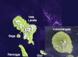Ranongga is a 28 km (17 mi) long, narrow island, located 8 km (5 mi) north-east of Simbo Island and south-west of Gizo, the capital of Western Province. The highest point is Mt. Kela (869m)[1]