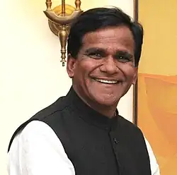 Raosaheb Dadarao Danve (born on 18 March 1955) is an Indian politician[4] and former Member of Parliament from Jalna, Minister of State in the Ministry of Railways, Ministry of Coal and Ministry of Mines in Second Modi ministry.[5] He is a member of Bharatiya Janata Party and was elected to Lok Sabha from Jalna constituency for five straight terms beginning in 1999 until 2024. He previously served as Minister of State for Consumer Affairs, Food and Public Distribution from 30 May 2019 to 7 July 2021 and also served as the Maharashtra state President of BJP.[6][7]