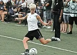 In October 2011, Rapinoe signed with Australian W-League team Sydney FC as a guest player for two games.[53] In her second game against Melbourne Victory, she scored with seven minutes remaining to seal three points for Sydney.[54] The win was the first for Sydney during the 2011–12 season.[55] Sydney FC went on to finish third in the regular season[56] and advanced to the playoffs where they were defeated by Brisbane Roar in penalty kicks.[57]