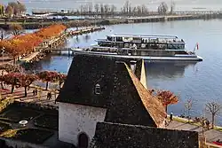 During summer, there is a ferry across Obersee.[25] The ferry connects a pier near the University of Applied Sciences Rapperswil (now part of OST), just south of Rapperswil railway station, with Lachen and Altendorf in the canton of Schwyz.