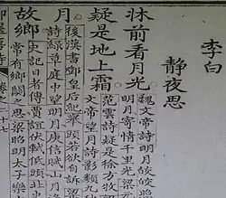 | Li Bai Poem 李白 静夜思 "Contemplating Moonlight" | Image of Kangxi edition page |