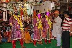 The famous Umiya Dham temple, Mamaji Ka Dhaba, Mashal Hotel, Hotel Papaya Tree, Nakhrali Dhani, Hardiya Eye hospital, Vikas Namkeen are a few popular locations of Rau. Rau is also famous for the Dusherra Vijayadashami festival celebrated on the tenth day of the month of Ashwin, according to the Hindu lunisolar calendar, which corresponds to September or October of the Gregorian calendar. The first nine days are celebrated as Maha Navratri (Devnagari: नवरात्रि, 'nine nights') or Sharada Navratri (the most important Navratri) and culminates on the tenth day as Dusehhra. In Navratri the last two days i.e. Mahaashtami and Mahanavmi are also remarkable because of the traditional Mata ki Sawari in which people use to worship the Goddess Amba - Durga and Chousath Jogini Kalika Maharani with Bairav Baba.