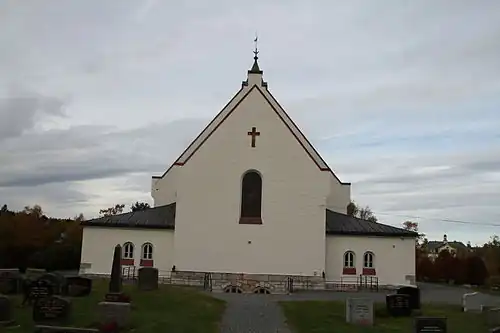 Raufoss Church (Norwegian: Raufoss kirke) is a parish church of the Church of Norway in Vestre Toten Municipality in Innlandet county, Norway. It is located in the town of Raufoss. It is the church for the Raufoss parish which is part of the Toten prosti (deanery) in the Diocese of Hamar. The white, stone church was built in a long church design in 1939 using plans drawn up by the architect Henry Bucher. The church seats about 450 people.[1][2]