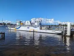 The Raymond Island Ferry, operated by the East Gippsland Shire Council, provides the only link between the island and the mainland, but also acts as an effective barrier to faster development of the island community. A ferry has run between Paynesville and Raymond Island since 1889,[6] and has been an integral and sometimes controversial feature of life on Raymond Island. Some continue to call for the ferry to be replaced by a bridge, but others believe the ferry is an integral part of life on the island.