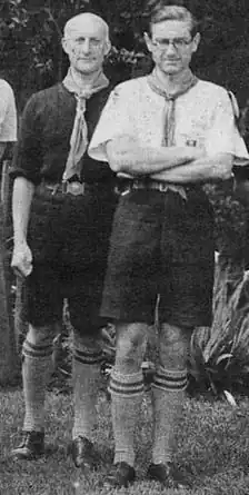 ![]() Raymond Schlemmer (left) and Guillaume de Larigaudie (right) at the Frankston Jamboree in 1934 | |