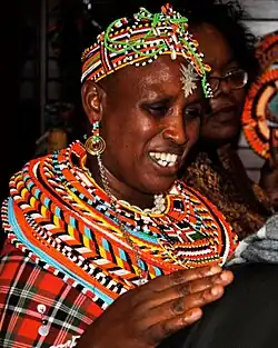 Rebecca Lolosoli (born 1962) is the founder and matriarch of the Umoja village in Samburu County of Kenya.[1][2] The village is a refuge for women fleeing sexual abuse, and men are banned from the village.[3] She plans to run for local office aiming to be the first Samburu woman ever do so.[4]