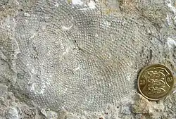 Receptaculites is the name-bearing genus for an extinct group of conspicuous benthic marine genera, the receptaculitids (formally Receptaculitaceae or Receptaculitidae), that lived from the Early Ordovician through the Permian period, peaking in the Middle Ordovician. The group's phylogenetic origin has long been obscure, with some arguing that they were calcareous algae, probably of the order Dasycladales.[3] Receptaculitids lived in warm, shallow seas,[3] but consensus disagreeing.[4][5] They have been described from all continents except Antarctica.[6][1] In some areas they were important reef-formers, and they also occur as isolated specimens.[7]