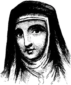 Sketch of Juliana Berners, author of the earliest essay on recreational fishing.
