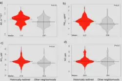 - ^ Lane, Haley M.; Morello-Frosch, Rachel; Marshall, Julian D.; Apte, Joshua S. (March 9, 2022). "Historical Redlining Is Associated with Present-Day Air Pollution Disparities in U.S. Cities". Environmental Science & Technology Letters. 9 (4): 345–350. Bibcode:2022EnSTL...9..345L. doi:10.1021/acs.estlett.1c01012. PMC 9009174. PMID 35434171.