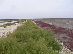 Red Beach (simplified Chinese: 红海滩; traditional Chinese: 紅海灘; pinyin: Hóng hǎitān), located in Dawa County, Panjin, Liaoning, China, is famous for its landscape featuring the red plant of Suaeda salsa (Chinese: 碱蓬草) of the family Chenopodiaceae. It is based in the biggest wetland and reed marsh in the world. The landscape is composed of shallow seas and tide-lands.[1]