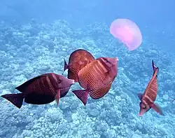- ^ a b John E. Randall (2022). "Family Acanthuridae". In Phillip C Heemstra; Elaine Heemstra; David A Ebert; Wouter Holleman; John E Randall (eds.). Coastal Fishes of the Western Indian Ocean (PDF). Vol. 5. South African Institute for Aquatic Biodiversity. pp. 219–244. ISBN 978-1-990951-32-9. Archived (PDF) from the original on 2023-06-12. Retrieved 2023-07-17.