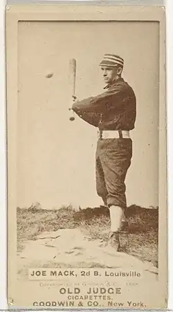 Joseph McNamara (May 2, 1866 – December 30, 1916), known professionally as Reddy Mack, was an Irish-born professional baseball player. He played professional baseball from 1885 to 1890, mainly as a second baseman. Mack played the first four years of his career with the Louisville Colonels, before joining the Baltimore Orioles for the final years of his career. Through his career, he proved to be a mediocre hitter and fielder, except for the 1887 season, where he hit .308 with 147 hits in 128 games. [1][2]