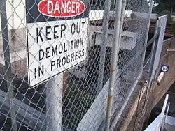 Until 1994, Redfern had an overhead footbridge at the Eveleigh end of the platforms, connecting platforms 1–10 by stairs. This was demolished because the funds for its maintenance were not available.[8] In c. 1994 the southern footbridge was removed as the Eveleigh railway workshops were gradually closed down and the footbridge was no longer required.[3]