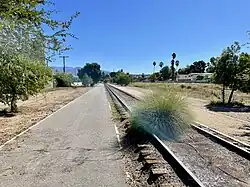 At the turn of the 20th century, Redlands was the "Palm Springs" of the next century, with roses being planted along many city thoroughfares. Some of these plantings would survive as wild thickets into the 1970s, especially adjacent to orange groves where property management was lax. Washingtonia palms (Washingtonia robusta) were planted along many main avenues. So beautifully kept was the area, with the dramatic mountain backdrops, that for several years the Santa Fe Railroad operated excursion trains along the loop that passed through the orange groves of Redlands and Mentone, across the Santa Ana River, and back into San Bernardino via East Highlands, Highlands and Patton, and advertised as the "Kite Route" due to its multi-sided alignment. The trestle over "the Wash" north of Mentone was carried away during a flood in March 1938 and never replaced, the line being truncated there. The Southern Pacific branch line from the San Timoteo Canyon to Crafton was abandoned after the downtown packing house business died. A thru-truss bridge over the Zanja (locally pronounced "san-kee") exists today, abandoned in place. Burlington Northern Santa Fe, result of the AT&SF-Burlington Northern merger, applied to abandon its San Bernardino-connected branch line east of downtown Redlands in 2007, the last shippers at Crafton and Mentone having ceased operations. A move was made by transit activists beginning in the 1990s to have this branch revitalized as part of the Southern California transit districts, but it came to nothing for many years. After Metrolink regional commuter rail became involved and funds secured, reconstruction began in 2019 and named Arrow. It was completed in 2022, a Metrolink branch from San Bernardino to end-of-track on the eastern side of town adjacent to the campus of the University of Redlands. 5 new stations with mostly local service to and from the San Bernardino Transit Center and one daily ride to Los Angeles Union Station.