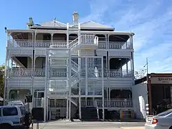 The first hotel was established on the site in 1874, as a single-storey wooden building.[3]