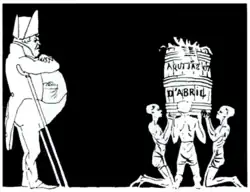 Pedro I had stayed in Brazilian waters until his return to Europe; initially boarded in an English frigate, it was in the French corvette Volage that the former emperor departed to Europe.[4] On 13 April, the regency announced the former monarch's departure from Brazil and the people took to the streets to celebrate the "fall of the tyrant".[6]