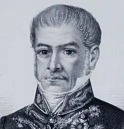 Despite the parliamentary recess, within a few hours after Pedro I's abdication, the senators and deputies who were in the court met. They officially received the emperor's resignation in the Palace of the Senate from general Francisco de Lima e Silva.[5] They then elected a provisional regency, consisting of three senators: Francisco de Lima e Silva, Nicolau Pereira de Campos Vergueiro and José Joaquim Carneiro de Campos.[4] It was thus composed of a prestigious military officer, a liberal and a conservative, respectively.[5] Such regency was provided for in title 5, chapter V, articles 121 to 130 of the Political Constitution of the Empire of Brazil.[6]