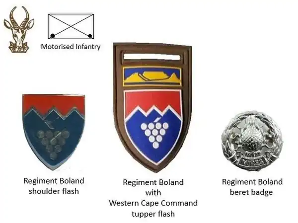 Regiment Boland traced its ancestry back to Regiment Westelike Provincie (RWP) (now called Regiment Westelike Provinsie), which was one of the Afrikaner-oriented units that was raised by the Union Defence Force in 1934. RWP was renamed Regiment Onze Jan in 1951, only to be changed again in 1960, to Regiment Boland.