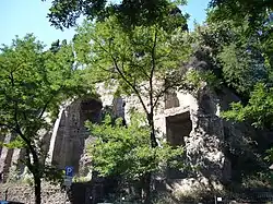 According to Livy, during the reign of Tullus Hostilius, the entire population of Alba Longa was forcibly resettled on the Caelian Hill.[1] In Republican-era Rome the Caelian Hill was a fashionable residential district, site of residences of the wealthy. Archaeological work under the Baths of Caracalla has uncovered the remains of lavish villas complete with murals and mosaics. A significant area of the hill is taken up by the villa and gardens of Villa Celimontana. The Caelian Hill is the site of the Basilica of Santi Giovanni e Paolo and the ancient basilica of Santo Stefano Rotondo.