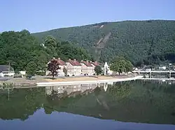The town of Givet is situated along both banks of the river, with a smaller settlement on one side, which was still referred to as "Les Galoches" during the nineteenth century,[31] and a larger Givet on the other side.[32]