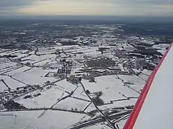 This is the easternmost part of the Thiérache region, situated within the Aisne department but extending into the Ardennes and the Nord. This land is characterized by a network of hedgerows and forests, with a gently undulating topography.[49] The underlying subsoil corresponds to the end of the Lias and infra-Cretaceous layers.[50]