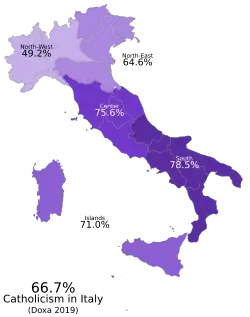 - ^ "Aspetti della vita quotidiana : Pratica religiosa - regioni e tipo di comune" [Aspects of daily life: Religious practice – regions and municipal divisions]. dati.istat.it. Retrieved 18 October 2023.