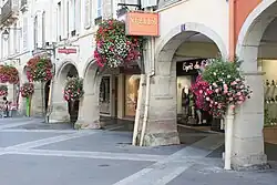 The town's principal shopping street is rue Charles de Gaulle. This street is lined by 18th-century arcades, providing a sheltered walkway for visiting the local boutiques and cafés. It is at the westernmost end of this street that the aforementioned statue can be found.