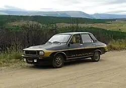In Canada, the Renault 12 was assembled locally by SoMA in Québec from CKD kits from 1970 until summer 1973. The first two years' production the cars had small side marker lights, rectangular Cibié headlamps and the 60 HP SAE gross 1289 cc engine with single barrel Solex carb. La Presse newspaper reported in 1970 that a few 12 Gordinis were also imported to Canada before the stricter 1972 emission controls kicked in. From then on, the Renault 12 was imported fully built-up from France, and equipped with the 1647 cc all aluminium engine and 4 150 mm sealed beam headlights. Starting in late 1977, Canada received a 1.4-liter engine, the same as was also used in Sweden, to meet more stringent emissions standards than those used in most European markets. Power was 66.5 hp (50 kW; 67 PS) SAE Gross at 5000 rpm. The R12 sold in Canada was available in base, L, TL, or GTL versions, as well as a Station Wagon (largely equivalent to the TL trim). The L, TL, and Station Wagon were also available with the automatic transmission.[19] In total, 25,662 Renault 12 were sold in Canada: 1477 basic models from 1973-1976; 3935 12L models between 1970 and 1976; 10,270 12 TL/GTL models between 1970 and 1976; 1731 12L Automatics between 1971 and 1976; 2004 12TL Automatics between 1971 and 1976; 4029 R12 Station Wagons between 1971 and 1976; 1300 R12 Automatic Station Wagons between 1971 and 1976; and finally only 916 R12 Nordic sedans and station wagons in 1977-1979. The foregoing data from M.C. Fertey, former head of Renault Canada Ltée does not include figures by model for 1978, but roughly 900 R12 Nordics were likely sold that year. The Canada-only "Nordic" special edition was available in 1978 and 1979, and played up the commonalities between the Canadian and Scandinavian markets.[19] Period advertising made mention of the shared 1.4-liter engine and offering Scandinavian-market equipment such as headlight washers and Finnish-developed aluminum front inner fenders. This version was only available in Metallic Blue, with mock-wood trim on the Station Wagon model. Sales the last few years were desultory, with 654 Renault 12s sold in Canada in 1979, 225 in 1980, and a final 37 cars delivered in 1981.[20]