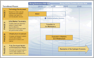 A hydrogen infrastructure is the infrastructure of points of hydrogen production, truck and pipeline transport, and hydrogen stations for the distribution and sale of hydrogen fuel,[96] and thus a crucial prerequisite before a successful commercialization of fuel cell technology.[97]