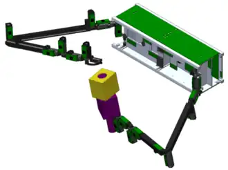 ![]() Diagram of RSat-P manipulating an object with its two robotic arms. | |