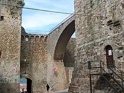 The pro-Sienese faction, led once again by Ghiozzi and Galluti, resumed contact with the enemy who at that time was engaged with their army in Maremma, for the definitive pacification of Grosseto after some anti-Sienese riots that occurred in the city. Taking advantage of the proximity of the Sienese army to the Massa territories, a surprise attack was then hatched. With the complicity of the pro-Sienese faction, the Porta all'Arialla (the current Porta al Salnitro) was left open[7] late at night, so that enemy troops could enter at the appointed time. So it was that on the morning of 24 August 1335 the army of the Republic of Siena, led by Captain Jacopo Gabrielli, secretly entered the city and together with the citizens who had organized the betrayal, they took all the defensive positions of the Old City surprising the citizens in their sleep.