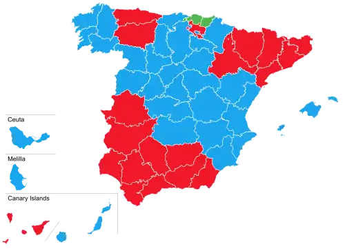 | PSOE | 6,741,112 | 43.5% | 25 | |