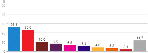 | Salamanca | 41.7 | 3 | 22.9 | 1 | 6.9 | − | 5.8 | − | 8.5 | − | 2.8 | − | 2.6 | − | ||||||||||||