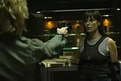 ![]() Admiral Helena Cain (Michelle Forbes) in her quarters shortly before being shot by Gina (Tricia Helfer) | |
