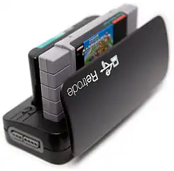 The Retrode is a USB adapter for legacy video games that enabled the use of game cartridges and controllers with emulators.[1] Technically, the Retrode could be considered a ROM dumper in that it could create a copy of the cartridge content. Unlike most such devices, the Retrode could be operated without drivers or special software under the most popular operating systems. It further allowed the emulator to directly access the game data through the file system, eliminating the need to create a ROM image as a separate step. By default, the Retrode was equipped with cartridge slots and controller ports for the SNES and Sega Genesis (also known as Mega Drive outside North America) game consoles; support for cartridges and controllers for other systems could be added via so-called plug-in adapters that users can buy online or make themselves.[2]