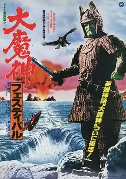 Daimajin (大魔神, Daimajin; lit. 'Giant Demon God') is a Japanese tokusatsu[note 1] series centering on an eponymous fictitious giant warrior god. It initially consisted of a film trilogy shot simultaneously and released in 1966 with three different directors and predominantly the same crew.[3] The series was produced by Daiei Film and contained similar plot structures involving villages being overthrown by warlords, leading to the villagers attempting to reach out to Daimajin, the great demon god, to save them.[4]